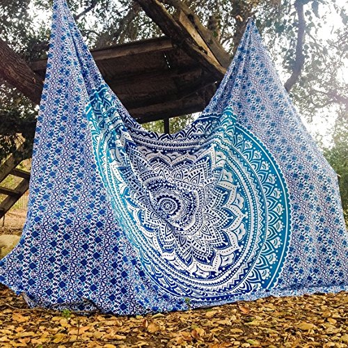 Dorm Tapestry Hippy Mandala Bohemian Tapestries Indian Dorm Decor Psychedelic Tapestry Wall Hanging Ethnic Decorative Beach Throw Cotton Twin Bed covers Blue