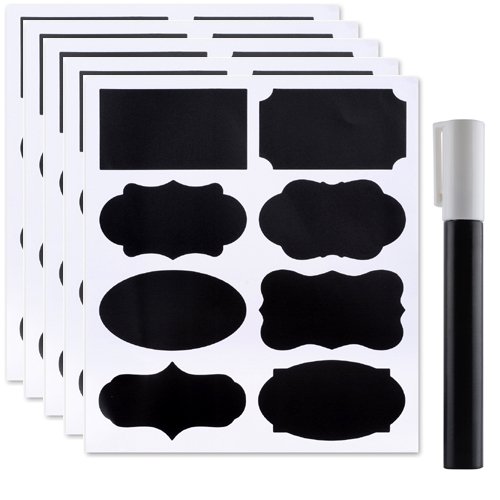 Vastar 64 Unique Chalkboard Labels with White Liquid Chalk Marker, Premium Reusable Stickers for Jars, Pantries, Craft Rooms, Spice Jars, Baskets, Box, Wine Glasses, Parties, etc