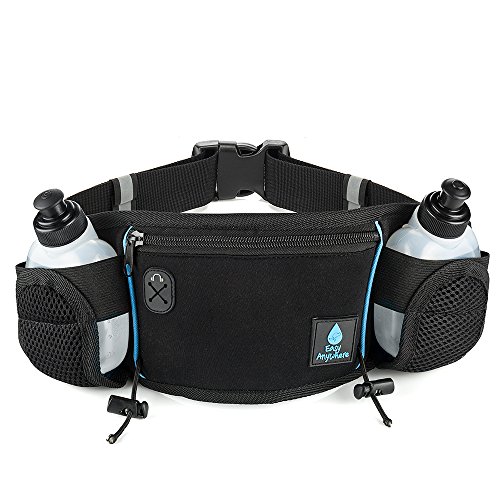 Easy Anywhere Hydration Running Belt - Extra Large Pocket - with 2 Bpa-Free Water Bottles - Fits Large Smartphones, Including iPhone 6 Plus - Bounce Free Running Belt - Extra Pouch for Essentials