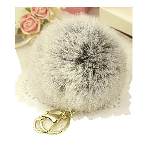 Gold Plated Keychain Cute Genuine Rabbit Fur Ball Pom Pom Keychain for Car Key Ring Handbag Tote Bag Pendant Charm