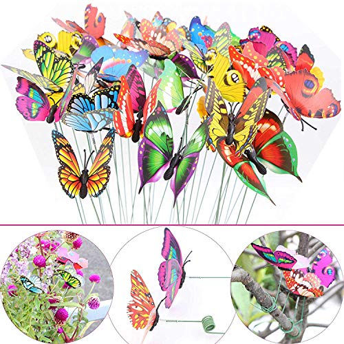 LeBeila Butterfly Stakes – Garden Yard Ornaments & Patio Décor Butterflies Waterproof Butterfly Decorations for Indoor/Outdoor Planter Flower Pot Bed, 24 pcs Christmas & Party Supplies Crafts (24)