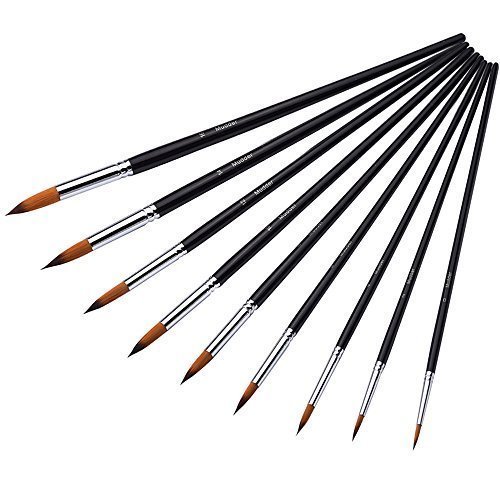 Mudder Oil Watercolor Paint Brushes, 9 Piece Golden Nylon Detail Paint Brushes Suitable for Art Students, Amateur and Professional Artists