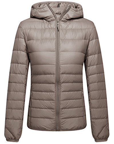 ZSHOW Women's Outwear Hooded Packable Quilted Down Jackets Light Weight Down Coat, Medium, Light Camel