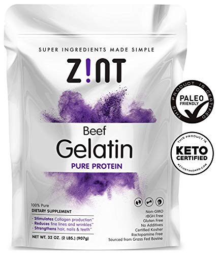 Zint Beef Gelatin Powder: Unflavored Kosher Paleo-Friendly Collagen Protein, 32 Ounce