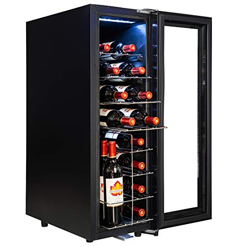 AKDY 20 Bottle Touch Panel Single Zone Chrome Wire Standing Shelves Freestanding Compressor Key Lock Black Wine Cooler
