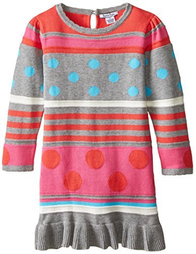 Hartstrings Girls' Little Polka Dot and Stripe Pattern Sweater Dress, Tamarillo, 5/6