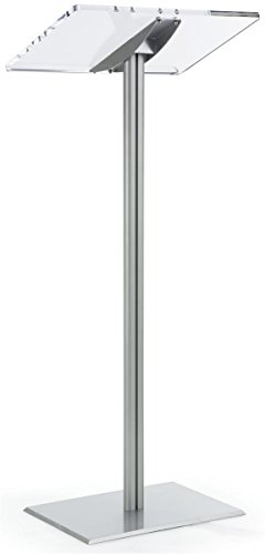 Displays2go Floor Standing Speaking Podium, Slanted Top, Quick Assembly, Silver (CLRLECBNDS)