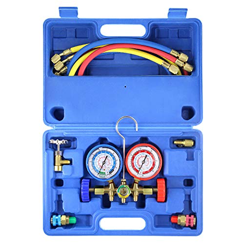 AURELIO TECH WCHPC061050 MGS-0005-WZ Blue & Red 5FT R134a R12 R22 R502 HVAC A/C Diagnostic Manifold Gauge Refrigeration Charging System