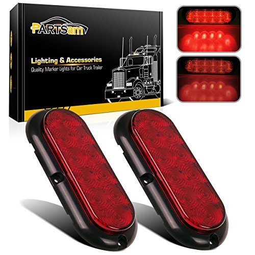 Partsam 2pcs 6" Red 10LED Oval Truck Trailer Stop Turn Brake Tail Light Sealed Flange Mount