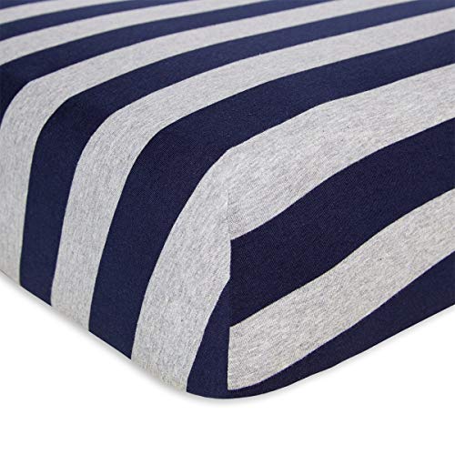 Burt's Bees Baby - Fitted Crib Sheet, Boys & Unisex 100% Organic Cotton Crib Sheet For Standard Crib and Toddler Mattresses (Blueberry Bold Stripes)