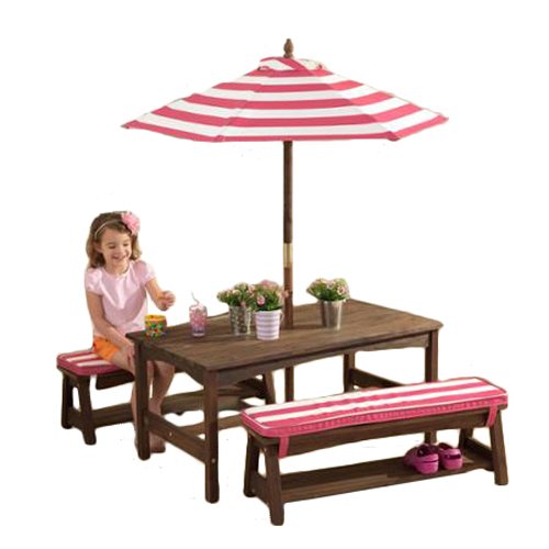 KidKraft Table, Bench Set Pink & White Outdoor Furniture