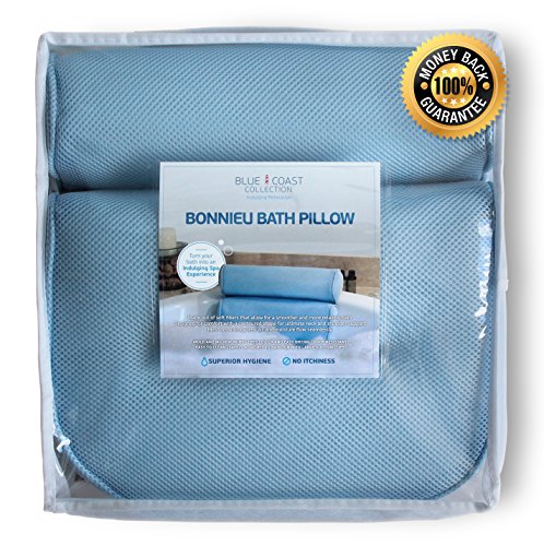 Blue Coast Collection–Bath Pillow for Tub with Konjac Sponge–Large Size for Bathtub, Hot Tub, Jacuzzi, and Home Spa–Non-Slip Luxury Support for Head, Neck, Back and Shoulders, 4 Strong Suction Cups