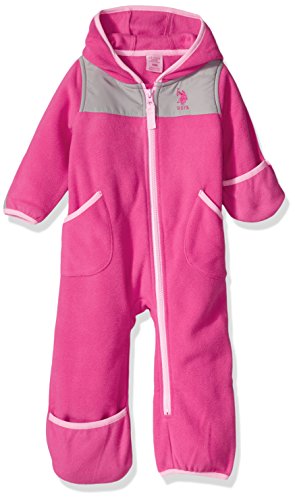 U.S. Polo Assn. Baby-Girls Ruffled Logo Print Puffer Pram, Berry Pink, 6-9 Months
