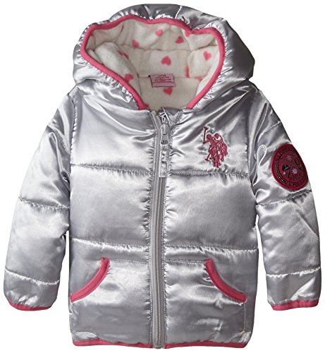 U.S. Polo Assn. Baby-Girls Foil Printed Pongee Polyfilled Shell Jacket, Baby Pink, 24 Months