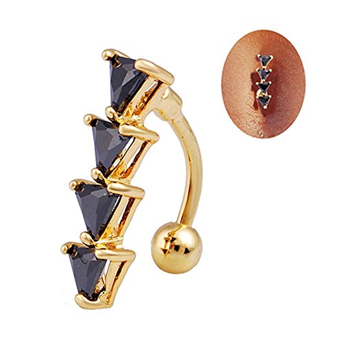 CHN'S Women Sexy Belly Navel Ring Black Punk Three Triangle Diamond Gold Mental Piercing Jewelry Belly Bar Button Crystal Body Jewelry