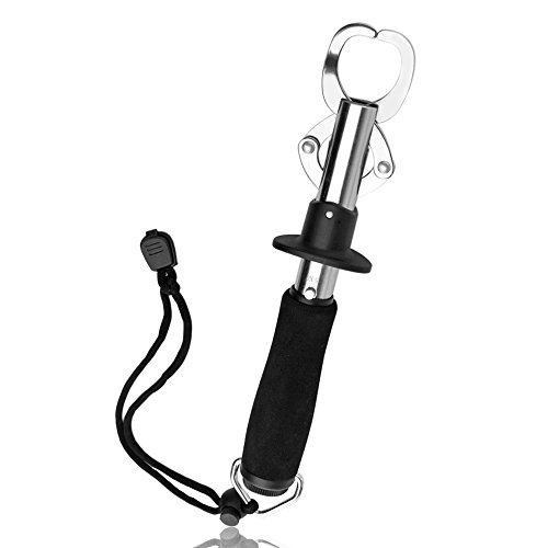 Flexzion Portable Fish Lip Grabber Gripper Grip Holder Tool Stainless Steel Fishing Gear 15KG 33 Pound Weight Capacity with Wrist Strap