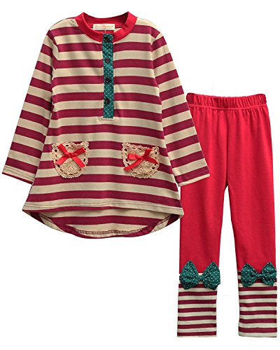 M RACLE Cute Little Girls Long Sleeve Top & Pant Clothes Set(Red1,Tag 120)