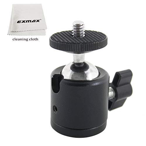 EXMAX 360 Degree Aluminum Alloy Body Rotating Swivel Mini Tripod Ball Head with 1/4" Screw Thread Base Mount for Lighter DSLR Camera Camcorder LED Light Bracket Hiking HTC Vive (Black)