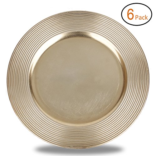 FANTASTIC :) Round 13 Inch Plastic Charger Plates with Metallic Finish (6, Multiturn Gold)