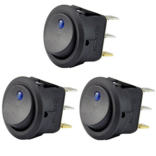 AutoEC 3pc 12V 20A Car Truck Round Rocker Toggle LED Switch Blue Light SPST On-off Control