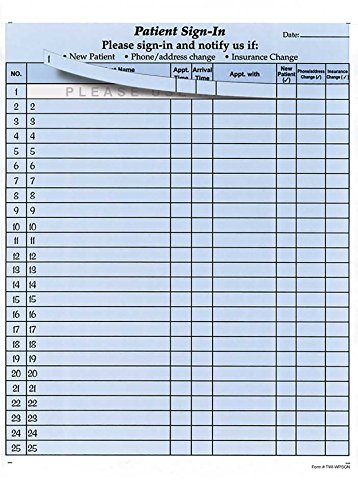 Patient Sign-in Sheets, 8-1/2" X 11" (Blue) Carbonless Form (Lot of 625 Sheets) HIPAA Compliant Form # TWI-WPSGN-625