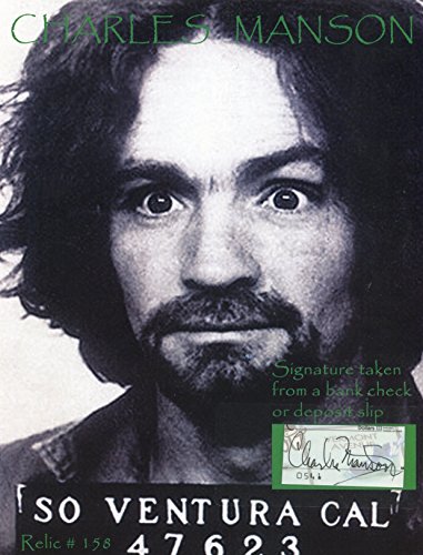 CHARLES MANSON / Manson Family rare signed check / photo display - UACC RD # 212