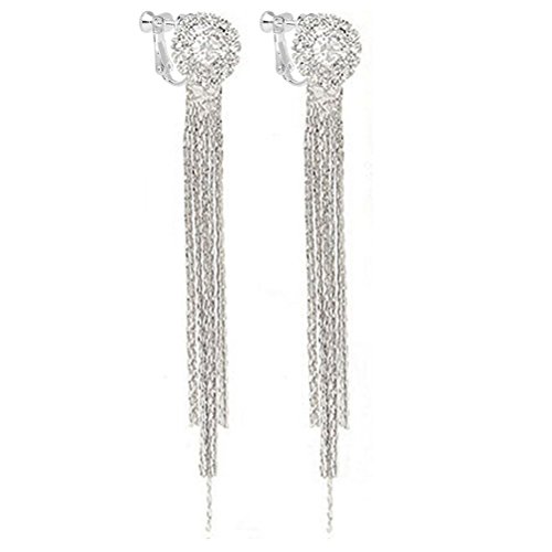 Latigerf Fashion Jewelry Women's Silver tone Long Tassels Screw Back Clip on Earring for Girl Rhinestone