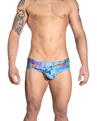Vuthy Sim Brand Men's Swim Brief In Blue Surfing Print