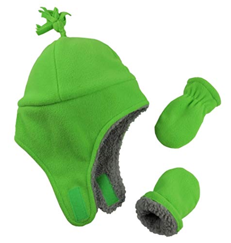 N'Ice Caps Boys Sherpa Lined Micro Fleece Pilot Hat and Mitten Set (6-18 Months, Neon Green Infant)