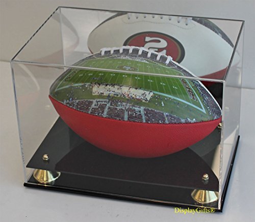 DisplayGifts UV Protection Football Display Case Holder Stand, (with Mirrored Backing)