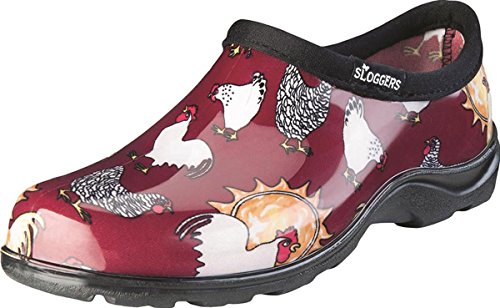 Sloggers Women's Waterproof Rain and Garden Shoe with Comfort Insole, Chickens Barn Red, Size 9, Style 5116CBR09