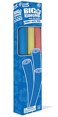 Splash Down Big Kahuna Pool Noodle, 4" Round, Red, Yellow, Blue & Green, 6 Pack