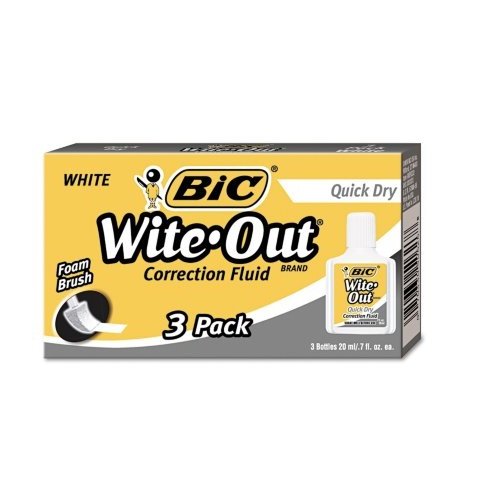 BIC WOFQD324 Wite-Out Quick Dry Correction Fluid, 20 ml Bottle, White, 3/Pack