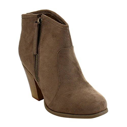 Liliana Romane-1 Women's Chunky Heel Riding Ankle Booties,Taupe,8