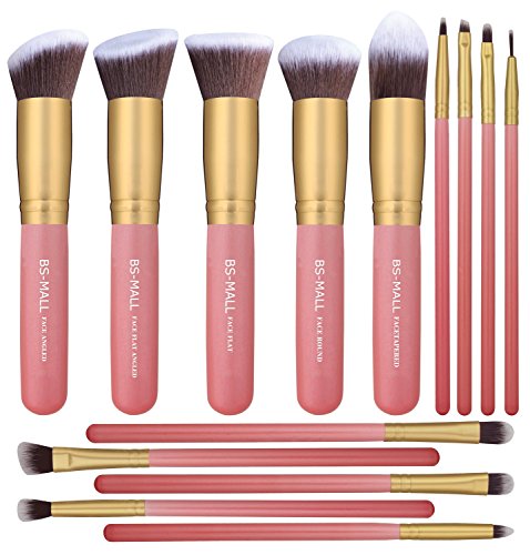 BS-MALL New 14 Pcs Makeup Brushes Premium Synthetic Kabuki Makeup Brush Set Cosmetics Foundation Blending Blush Eyeliner Face Powder Brush Makeup Brush Kit(golden Pink)