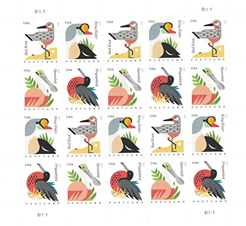 Coastal Birds Sheet of 20 Postcard Forever U.S. Postage Stamps by USPS