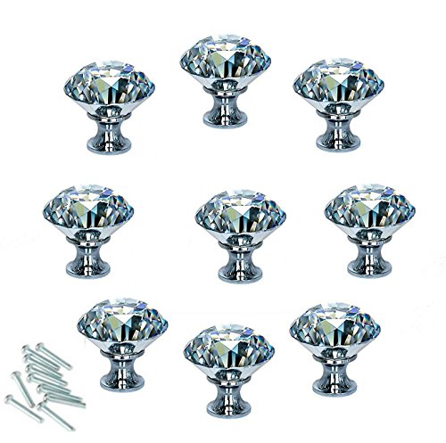 HOSL 10PCS 40MM Diamond Shape Crystal Glass Cabinet Knob Cupboard Drawer Pull Handle/Great for Cupboard, Kitchen and Bathroom Cabinets, Shutters, etc