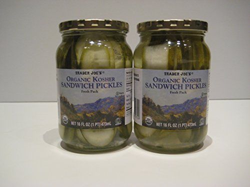 Trader Joe's Organic Kosher Sandwich Pickles, (2)- 16 Oz Jars.