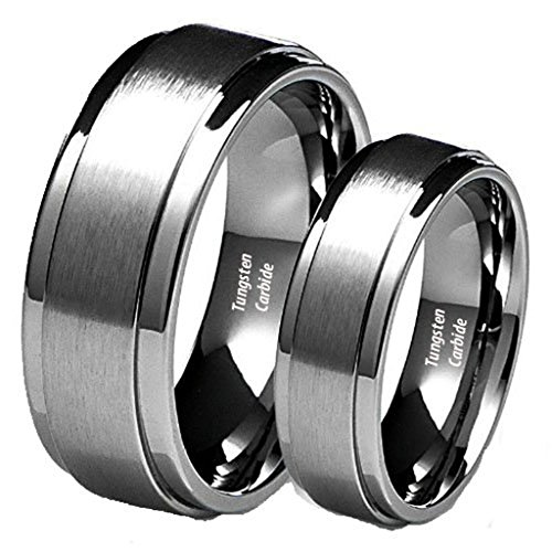 His & Her's 8MM/6MM Brushed Center Step Edge Tungsten Carbide Wedding Band Ring Set