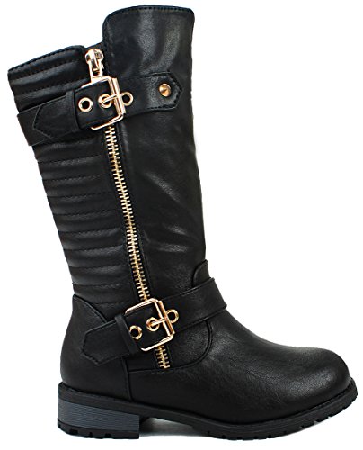 Kids Girls Mango20 Tan Dual Buckle Golden Zipper Quilted Motorcycle Riding Knee High Boots-11