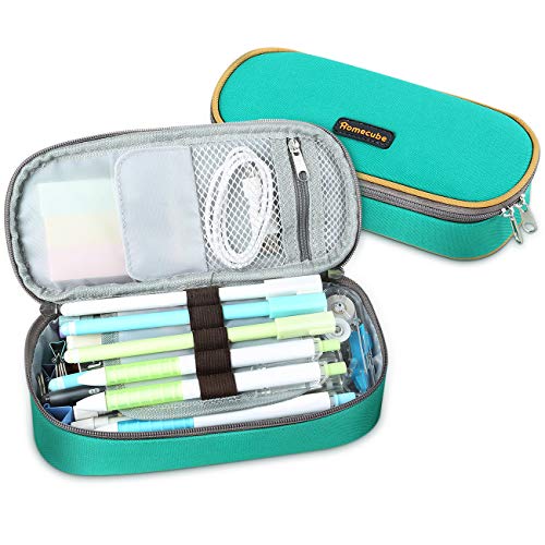 Homecube Pencil Case Big Capacity Pencil Bag Makeup Pen Pouch Durable Students Stationery with Double Zipper Pen Holder for School/Office, Green