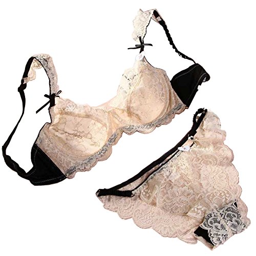 Ya Lida Thin section bra set deep V XL Ms. sexy lace transparent breathable Cream