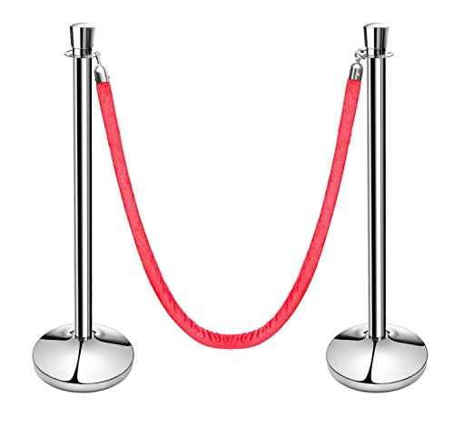 New Star Foodservice 54743 Tulip Top Stainless Steel Stanchions, Set of 2 Posts with 1 of 79.5-Inch Red Velvet Rope