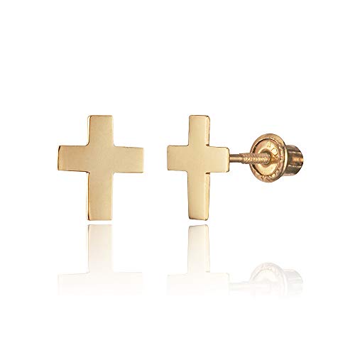 14k Yellow Gold Plain Cross Stud Children Screwback Baby Girls Stud Earrings