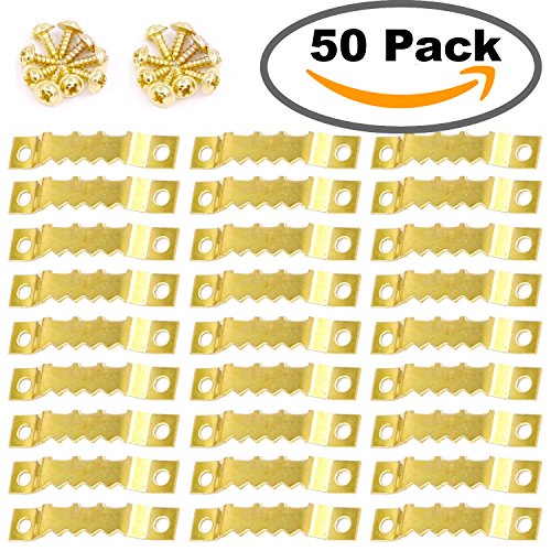 50x Golden Hanging Picture Painting Mirror Frame Saw Tooth Hook Hanger & Screw