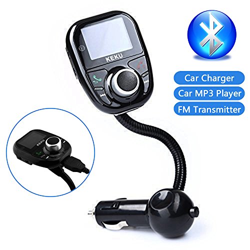 KEKU Univeral LCD Display Bluetooth Wireless Car MP3 Player FM Transmitter Modulator Radio Adapter Handsfree Car Kit with Hands-Free Calling Music Control Mic
