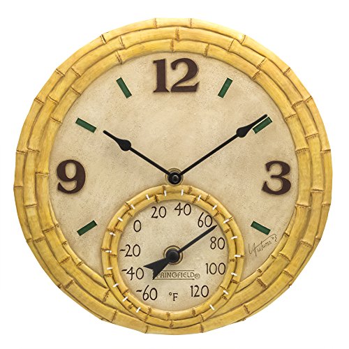 Springfield 12" Palm Tree Poly Resin Clock with Thermometer