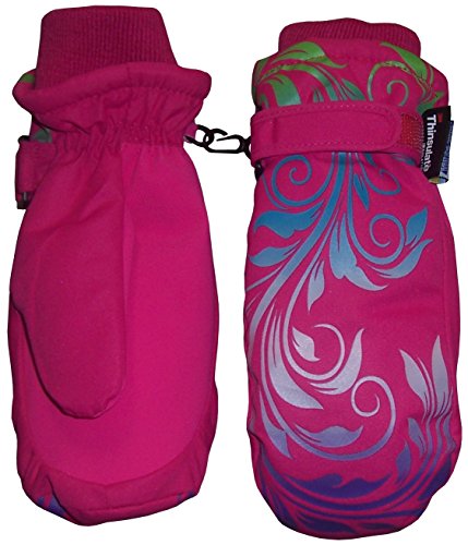N'Ice Caps Girls Zig Zag Chevron Print Thinsulate and Waterproof Mittens (6-8yrs, Fuchsia/Multi Print)