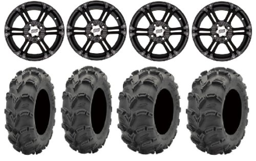 Bundle - 9 Items: ITP SS212 14" Wheels Black 27" Mud Lite XL Tires [4x110 Bolt Pattern 10mmx1.25 Lug Kit]
