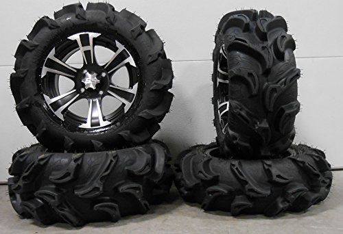 Bundle - 9 Items: ITP SS312 14" Wheels Black 27" Mega Mayhem Tires [4x110 Bolt Pattern 12mmx1.5 Lug Kit]